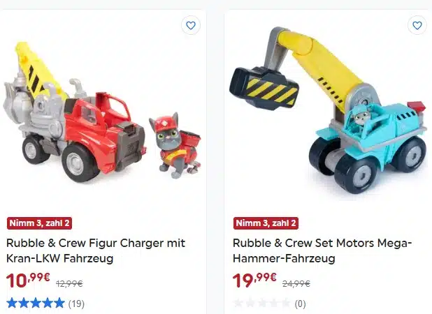 | Gratis Artikel | Rabatt: Kaufen Sie 3 Paw Patrol Aqua Pups und erhalten Sie 1 gratis. | Bis auf Widerruf |