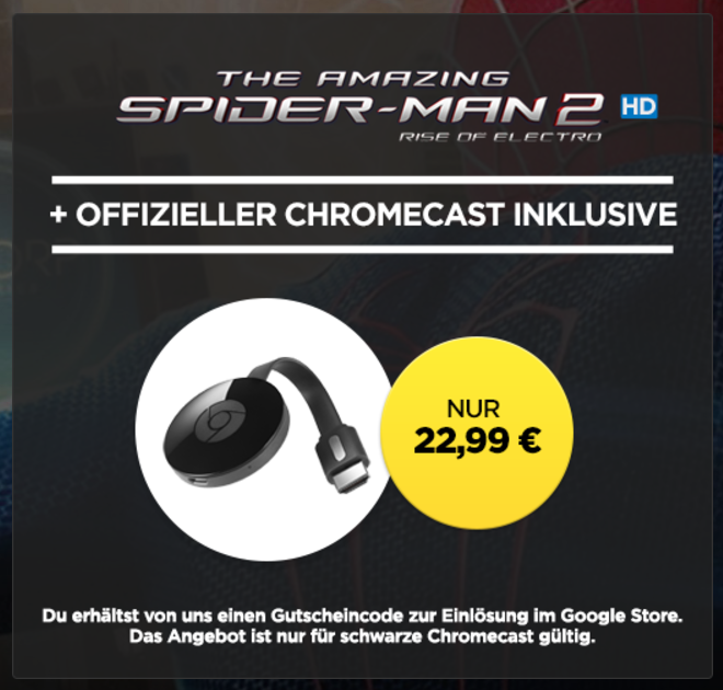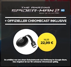 - Google Chromecast 2 inkl. „The Amazing Spider-Man 2: Rise Of Electro“ im HD-Stream für 22,99€ bei rakuten.tv (Preisvergleich: 38€ + 4€ als HD-Stream = 42€)