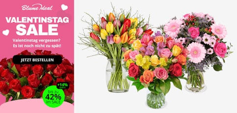 - 14% Extra-Rabatt zum verspäteten Valentinstag bei blumeideal.de