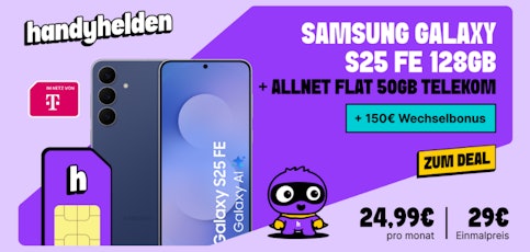 - Samsung Galaxy S25 FE im 50GB Telekom-Tarif bei Handyhelden.de
