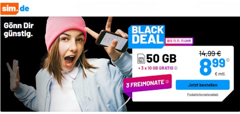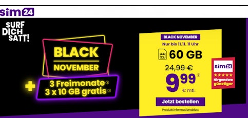 - 3 Freimonate bei Buchung eines 24-Monats-Tarifs & 3 x 10GB Cyber-Datenboost