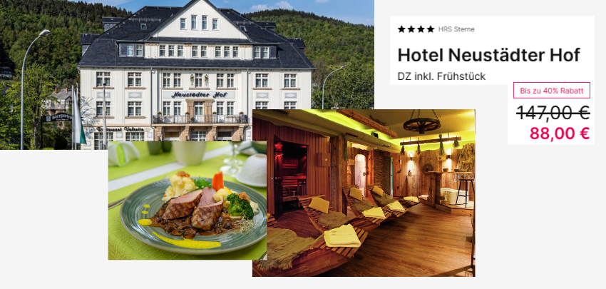 - Hotel Neustädter Hof für 88€ pro Person bei hrs.de (statt 147€)