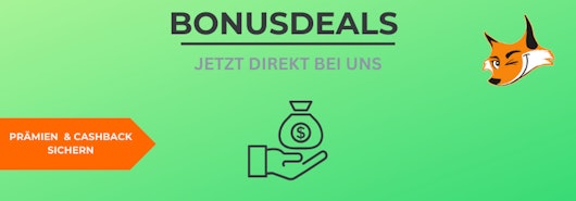 Über Dein Bonusdeal bekommt ihr nicht nur gute Angebote rund um Finanzen, Versicherungen und Software, sondern auch saftige Gutscheinprämien on top! Bisher musstet ihr dafür einen kleinen Umweg über "DeinBonusdeal.de" gehen. Der fällt jetzt weg! Ihr bekommt alle aktuellen Bonusdeals auf einen Blick, direkt bei uns auf dem Schnäppchenfuchs. Natürlich halten wir euch trotzdem mit unseren Deals auf dem Laufenden und ihr findet alle Highlights regelmäßig auf dem Blog. Schaut euch die Bonusdeals doch gleich mal an.