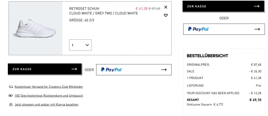 - Adidas Hamburg für 68,60€ inkl. Versand (vorher: 107€)