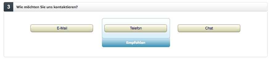 Die rufen nur zurück, nachdem man sie kontaktiert hat. Such mal die Kontaktinformationen bei von Amazon verkauften Artikeln, die älter als 30 Tage sind. Bei mir gibt es den Button nur, bei Marketplace-Artikeln.