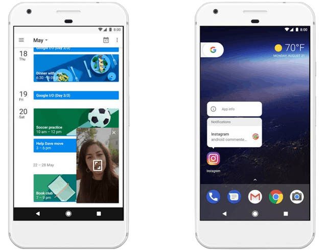 Android 8 kommt mit auffälligeren und wenig auffälligeren Neuerungen. Mit dem Update ist es nun einen Bild-in-Bild-Anzeige möglich. Eine App lässt sich so verkleinern, sodass die dahinterliegende App sichtbar wird und sich bedienen lässt. Gerade bei Videotelefonaten kann das praktisch sein. Die Darstellung von Notifikation ist ein großes Thema bei Oreo. Benachrichtigungen werden nun in App-spezifischen Kanälen sortiert. Dadurch soll eine größere Übersichtlichkeit ermöglicht werden. Eingegangene Nachrichten werden nun in der jeweiligen App durch einen zusätzlichen Punkt am Icon, dem sogenannten Notification-Dot, markiert. In einem Pop-up lässt sich die Benachrichtigung zudem in einer Vorschau anzeigen. Dazu genügt ein langes Drücken auf dem Display.