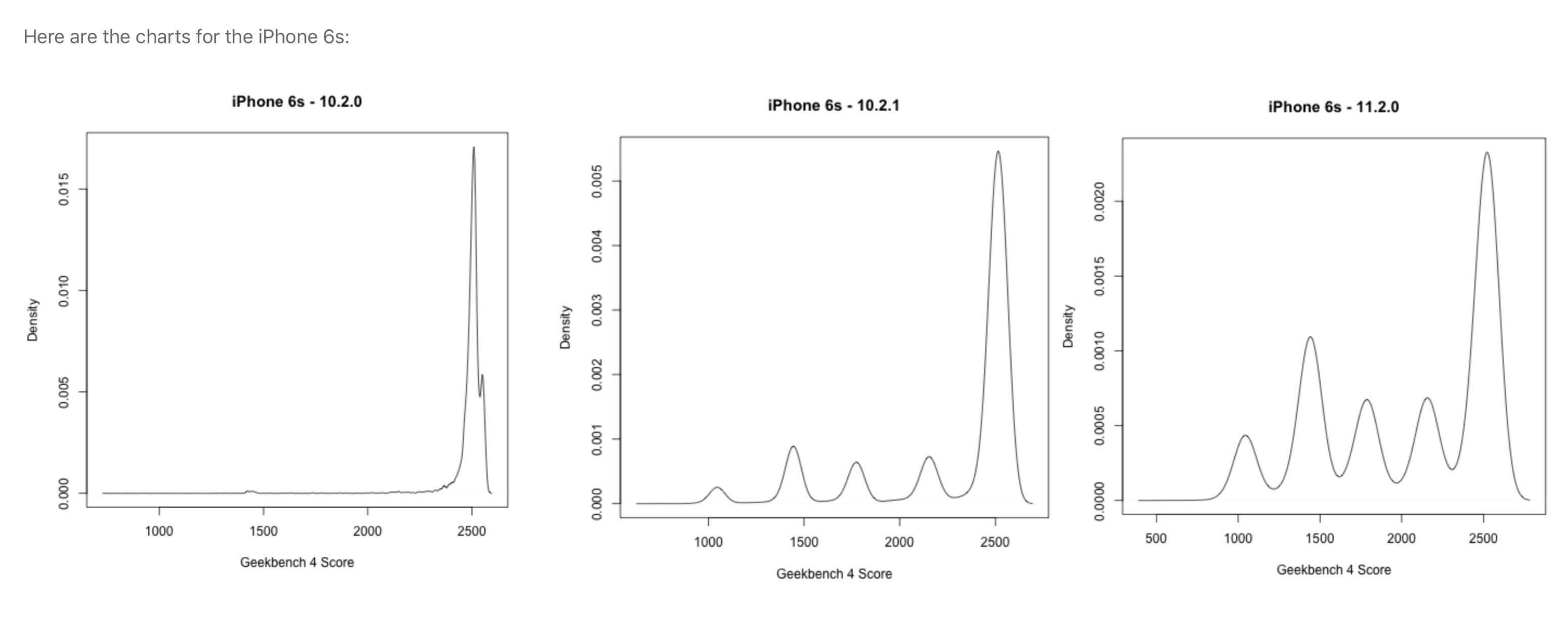 Belastungstests ergaben jedoch, dass Apple aufgrund der Akkulaufzeit den Prozessor drosselt. Die Leistung wurde vor und nach einem Akku-Wechsel getestet. Bei älteren Akkus stellte sich heraus, dass die Spitzenleistung eingeschränkt wurde. Als Begründung nannte man Vorkehrungen zum Schutz vor unerwartetem Ausschalten im iOS 10.2.1 Release (für die Modelle 6, 6s und SE) und bei iOS 11.2 (für das iPhone 7). Spitzenstrombelastungen könnten dazu führen, dass ältere Geräte bei Kälte oder niedriger Batterieleistung herunterfahren, damit elektronische Komponenten geschützt werden.