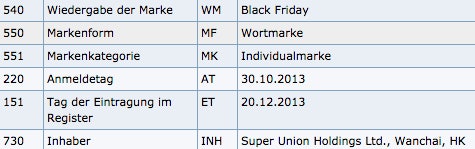 Der Begriff „Black Friday“ ist eine geschützte Marke. Das chinesische Unternehmen Super Union Holdings lies 2013 eine entsprechende Eintragung im deutschen Markenregister vornehmen. Damit hat das Unternehmen das alleinige Recht den Begriff „Black Friday“ zu verwenden.