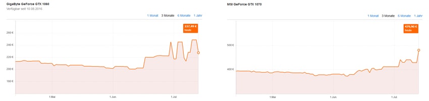 Preise für GTX 1060- und GTX 1070-Grafikkarten (letzte drei Monate)