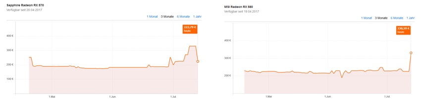 Preise für RX 570- und RX 580-Grafikkarten (letzte drei Monate)
