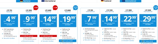 DeutschlandSIM bietet nationale Tarife ohne Roaming-Option sowie „International“-Tarife an. Hier macht sich ein deutlicher Kontrast zwischen den Kosten bemerkbar – die „International“-Tarife mit EU-Roaming sind zum Teil doppelt so teuer wie die Inlandstarife.