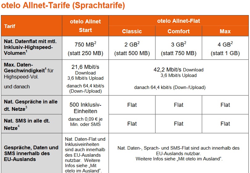 Blau ⇓ | Congstar ⇓ | DeutschlandSIM ⇓ | klarmobil ⇓ | Mobilcom-Debitel ⇓ | o2 ⇓ | Otelo ⇓ | simply ⇓ | smartmobil ⇓ | klarmobil ⇓ | Vodafone ⇓ | 1&1 ⇓