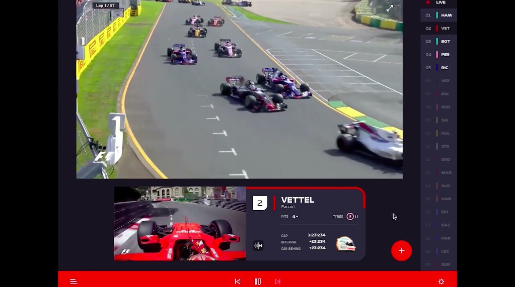 Der Zuschauer bekommt bei F1 TV wie gewohnt die Streckenbilder. Daneben wird der Stream die On-Board-Prespektive aller 20 Fahrer zeigen. In einem Video demonstriert die Formel 1 die Bedienung des Streaming-Dienstes. Neben einem Kanal für das Rennen kann jederzeit in die On-Board-Perspektive eines beliebigen Fahrers gewechselt werden. Weiter können verschiedenen Einstellungen gleichzeitig gezeigt werden. So kann die On Board-Kamera zum Streckenbild eingeblendet werden. Auch zwei Fahrer-Einstellungen lassen sich auswählen. In der Fahreransicht werden zudem weitere Infos, wie Runden- und Sektorzeiten, Abstand zum nächsten Fahrer und aktueller Reifen angezeigt.