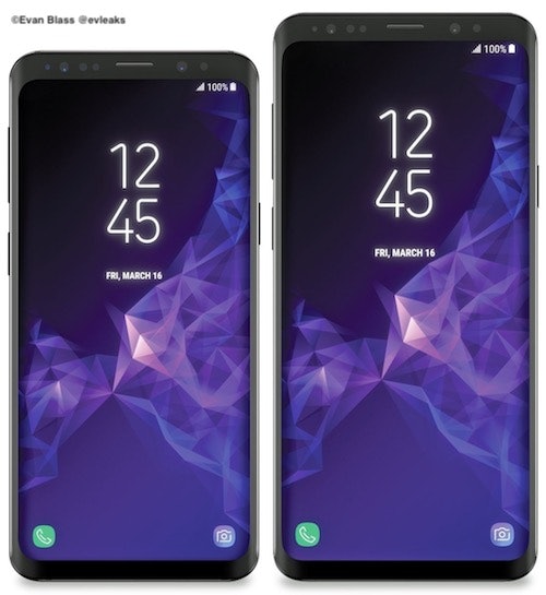 Optisch wird sich das Samsung Galaxy S9 am Vorgänger orientieren. Das sowohl beim Galaxy S9, als auch beim größeren Galaxy S9+ bleibt Samsung bei einem 5,8 beziehungsweise 6,2 Zoll großen Bildschirm. Auch das im letzten Jahr eingeführte 18,5:9-Seitenverhältnis wird offenbar beibehalten.