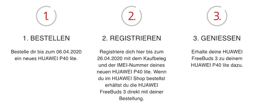 Wer das Huawei P40 lite direkt im Huawei Store bestellt, erhält die Freebuds 3 zusammen mit dem Smartphone geliefert. Käufer bei anderen Händlern finden alle Infos auf der Aktionsseite. Die Aktion läuft bis zum 6. April 2020.