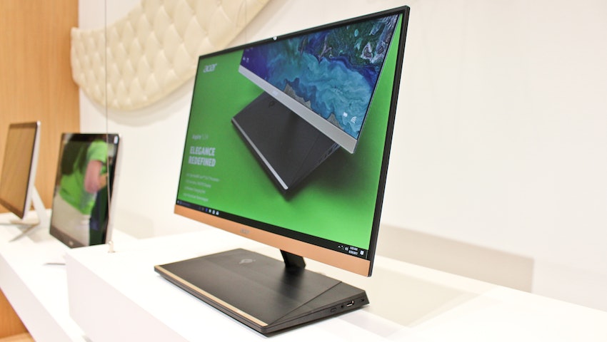 Auch für zu Hause zeigte Acer eine interessante Neuheit. Der Aspire S24 ist ein All-in-one-PC, der sich beim Design nicht hinter Apples iMac verstecken muss. Das schlanke 24 Zoll-Display in Full HD-Auflösung kommt mit einem sehr schmalen Rand. Alleine dadurch wird das Gerät zum Hingucker. Doch auch mit der Leistung braucht sich das Aspire S24 nicht verstecken. In dem rund sechs Millimeter dicken Gehäuse arbeiten i5 und i7-Prozessoren der achten Generation.