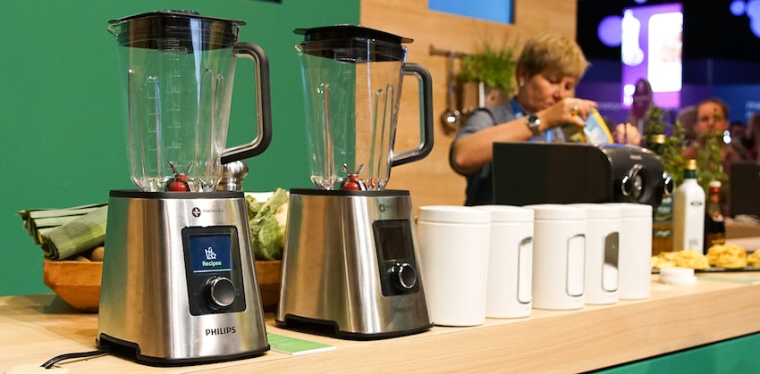 Überraschende IFA 2018 Neuheit auf der Philips Pressekonferenz war der smarte Hochleistungs-Mixer. Den Mixer neu erfunden hat das Unternehmen sicher nicht, aber möglicherweise für den Nutzer verbessert. 35.000 Umdrehungen zerkleinern alles, was in den Mixer eingefüllt wird. Die Nährstoffe sollen dadurch besser freigesetzt und so leichter vom Körper aufgenommen werden können. Und um die Nährstoffe geht es. Gesundheit und Kochen einer der IFA 2018 Trends.
