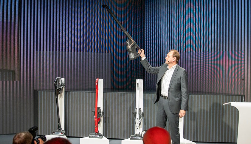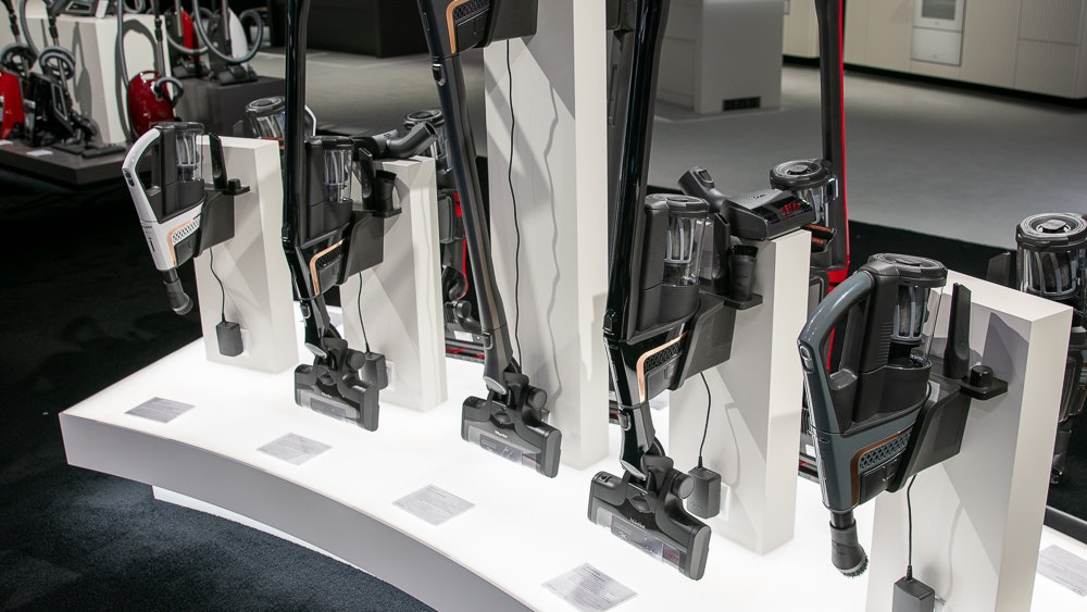 Mit dem Miele Triflex HX1 wurde der erste Akku-betriebene Handstaubsauger des Unternehmens enthüllt. Diese Gerätegruppe mache aktuell rund 50 Prozent der Neuverkäufe im Bodenpflegemarkt aus, so Markus Miele, Firmeninhaber und Geschäftsführer. Für die Geräte spricht das einfache, leichte, komfortable Saugen. Die Saugleistung ist dabei offenbar mit klassischen Bodenstaubsaugern vergleichbar. Das zeigte nicht zuletzt AEG auf der Ifa 2018 mit dem FX9. Durchaus ein Ergebnis der stromsparenderen Motoren durch die EU-Energievorgaben.