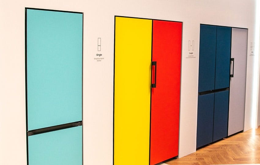 Ganz so flexibel ist Samsungs Bespoke allerdings nicht. Zwar lassen sich die Module frei kombinieren, die Innenaufteilung jedes Moduls kann jedoch nur am Anfang ausgewählt werden. Werden mehr Fächer im Kühlbereich oder mehr Tiefkühl-Kapazität gebraucht, kann nur ein neues Modul gekauft werden. Letztendlich handelt es sich um verschiedene einzelne Kühlschränke, die kombiniert werden können. Für eine individuelle Optik kann die Verkleidung der Kühlschranktür ausgetauscht werden. Verschiedene Farben und Designs sind erhältlich.Vergleichbare flexible Designmöglichkeiten gab es bereits von Herstellern wie Bosch zu sehen.