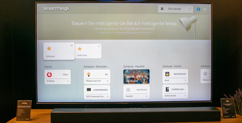 Das beste Beispiel für die aktuelle Entwicklung von künstlicher Intelligenz für das Zuhause sind Fernseher. Im Heimkino-Bereich arbeiten die Hersteller an der Integration von künstlicher Intelligenz zur Verbesserung der Bild und Tonqualität. Samsung hat auf der Ifa 2018 mit dem Quantum-Prozessor einen Chip vorgestellt, der die Bildqualität über KI verbessern soll. Dadurch soll vor allem das Upscalling profitieren. Full HD-Inhalte können so besser auf 4K oder gar 8K vergrößert werden. Laut Samsung verbessert KI die Leistung eines Fernsehers maßgeblich.