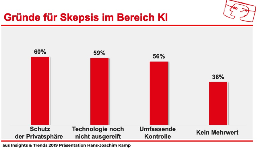 - Einschränkung bei Privatsphäre und Zunahme von Kontrolle durch KI befürchtet