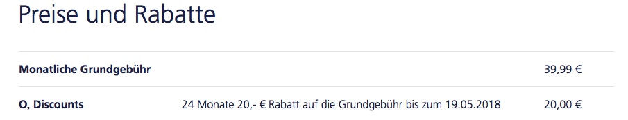 o2 hat im Dezember 2017 begonnen, seinen Bestandskunden im Zuge einer Vertragsverlängerung einen Treuerabatt einzuräumen. Nur Kunden, die diesen Rabatt erhalten haben, verlieren diesen im Falle einer Kündigung. – o2 / Telefónica