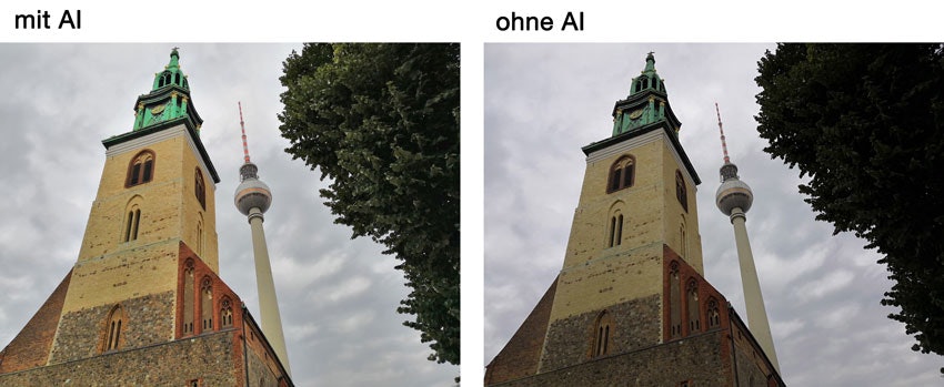 Den Vergleich gibt das Honor 10 sofort, denn die automatische Verbesserung lässt sich jederzeit an- und abschalten. Das geht auf dem Gerät selbst auch, nachdem die Fotos gemacht wurden. Mit der AI-Bildverbesserung werden Kontraste besser und Farben leuchtender. Allerdings neigt das Honor 10 dazu, die Farben zu übersteuern. Gedankenloses losknipsen mit perfekten Bildern geht eben nicht. Manchmal braucht es dann eben doch etwas Bearbeitung. Doch oft gefällt das Ergebnis.