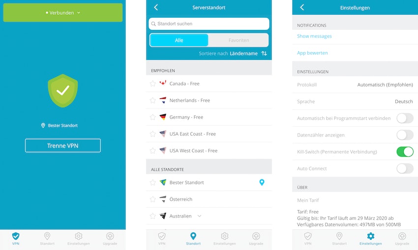 Kommt es zu einem Verbindungsabbruch, ist der Traffic also nicht mehr vom VPN geschützt, wird die Verbindung abgebrochen. Damit kann sich der Nutzer sicher sein, dass seine Daten nicht in unbefugte Hände geraten oder manipuliert werden