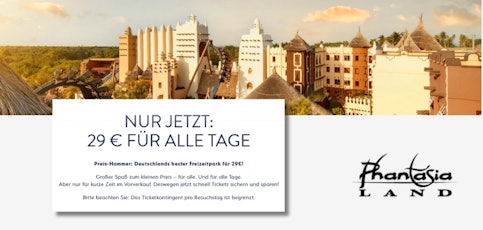 - Phantasialand-Tickets ab 28€ bzw. 29€/Person bei phantasialand.de (statt 68€/Kinder oder 78€/Erwachsene)